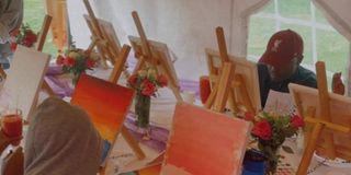 At her event, Unwind with Colour, guests spend a few hours painting on canvas under the guidance of an instructor while enjoying music, games and conversation. All materials from easels and brushes to paints are provided.