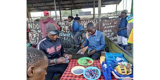 James Karanja and some of his friends work on some products for sale. The items range from Sh 100 to Sh 1000
