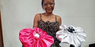 Today, her products range from bonnets to scrunchies, hair pins and complementary accessories, priced between Sh 750 and Sh 850 depending on the satin quality for bonnets. Bow clips at Sh 300 each and Snap clips at Sh 300 each