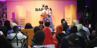 Smart Perpetters display a show for an audience at the Baraza Media Lab, urging Kenyans to register as voters ahead of the 2027 General Election