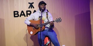 Samuel Njoroge, popularly known as Priest the Poet, the Community and Operations Associate at Baraza Media Lab, performs his song Twende Kwa Ballot, urging Kenyans to register as voters ahead of the 2027 General Election