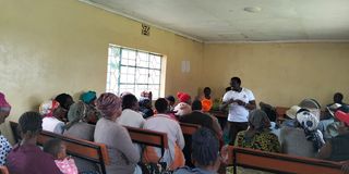 Farmers undergoing a training by one of Nakuru Tubers' co-founder, Enock Rugut.