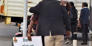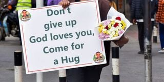 At the busy junction of Gusii Road and Kenyatta Avenue in the heart of Nakuru, one figure stands calmly, holding a simple placard that reads: “God loves you, come get a hug.”