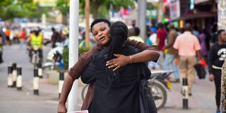 Faith Nduhiu gives a Nakuru resident a hug at the junction of gusii road and Kenyatta avenue on 20 February 2026
