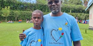 Patrick Menya Obunga together with his son Emmanel Shujaa Menya during the commemoration of the 2026 World Autism Awareness Day, at Trinity Chapel Nakuru on April 4