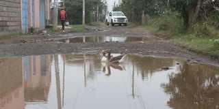 Roads had been turned into small pools, so much that ducks had begun swimming; in another section, the road right in front of a hospital was rendered impassable due to the large pool of water that had collected at the gate of the Muguga Dispensary, and according with the entire stretch of about a kilometer being inaccessible following heavy rains.