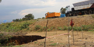 "This has affected the service lane, which is our route home. If the fissure widens, we will have no choice but to walk on the side of the highway, which is dangerous due to the speeding cars. People also fear walking here in case the land caves in,” Mr Sande says.