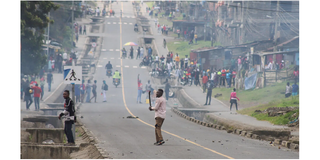 London residents block the Nakuru-Kabarnet road on their second day of protest in London area after police shot dead a man