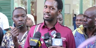 Trade Cabinet Secretary Lee Kinyanjui addressing residents in Nakuru city when he accompanied President William Ruto's trip to Nakuru town on November 28.