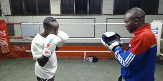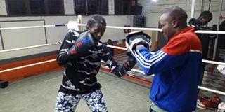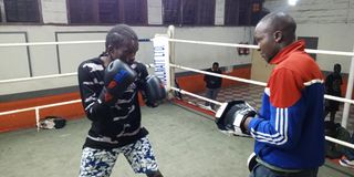 Felix Kuria training with Coach Lemed Thiong'o at Amateur Boxing Club on September 24, 2025.