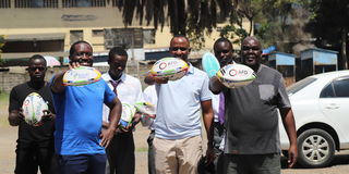 Teddy Omondi, Rugby Regional Development Officer in Paris donates rugby balls to Nakuru teams on November 24,2025