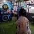 Millicent Wangui during a dart tournament hosted at Lions Primary School.