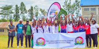 Flamcity Football Club pose for a photo after winning the FKF lower Rift women's league.