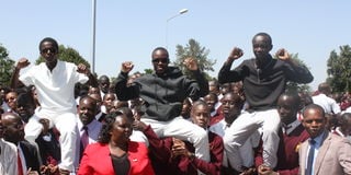 Some of the top performers from Kabarak High School being celebrated by the teachers and students