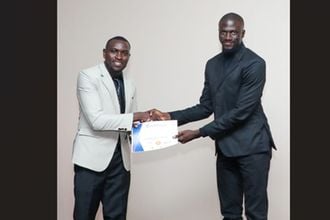 What's Hot Saturday, December 06, 2025 Nakuru Journalist Association Chairperson Joseph Openda gifts Bret Sanya with the digital journalist of the year award. Photo credit: Bret Sanya/Mtaa Wangu Photo: 1/1 View caption