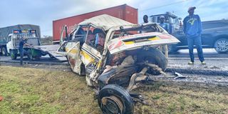 Wreckage of the vehicle's involved in accident at Diatomite area in Gilgil on January 19, 2026