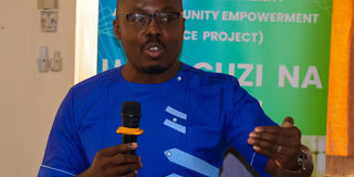 Calvin Muga, a programmes officer at Midriff Human Rights Network, during a multisectoral coordination and collaboration forum on peace and security on Feb 11
