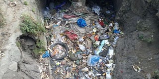 Open Waste dumping in a drainage along Oginga Odinga street on January 13,2026. Businesspeople now want county to clear the drainage and offer better waste management mechanisms in the area including provision of waste bins