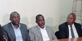 Nakuru County Secretary Dr Samuel Mwaura (left) and Lands CECM John Kihagi during a press briefing at Nakuru War Memorial hospital on October 27, 2023.