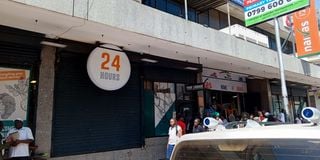 A sign showing Naivas Supermarket’s Midtown branch, located along Kenyatta Avenue, has transitioned to a 24-hour operation