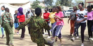 A section of women engaged in a cool down session after their run during the Kenya National Police recruitment process at Kapkures on November 17,2025.