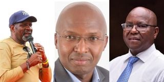 (From Left) Nakuru Town East MP David Gikaria, Dr. Peter Mbae, former Head of Government Delivery Services, and Lawyer Lawrence Macharia Karanja, former Chief Administrative Secretary who are vying for Nakuru Senatorial seat.