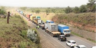 Traffic piles up along Nairobi- Nakuru highway after the WRC safari rally on June 25, 2023.