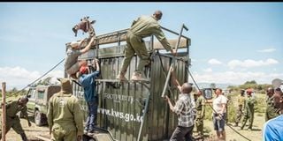 KWS officials relocating wild animals to Nairobi National Park and Naivasha Wildlife Santuary due to rising water levels in Lake Naivasha.