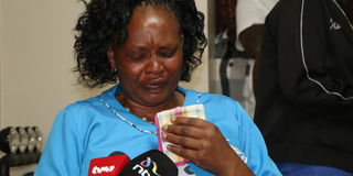 Sera Mugweru mother to Annitah Mugweru who was stabbed to death by her husband on Tuesday April 10, at their home in the upper hill area breaks down into tears as she calls for justice for her daughter