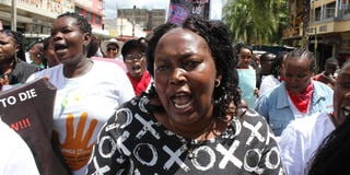 Chief Officer, Gender, Social Services and Inclusivity Gladys Kamuren during the peaceful walk marking the 16 days of activism on 25 November