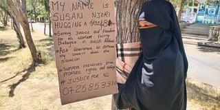 34-year-old Susan Muthoni on January 18, while participating in a 48-hour tree hugging challenge seeking justice and freedom for women in prisoned in Saudi Arabia
