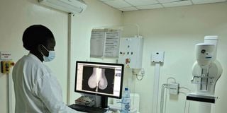 A technician reviews an image taken by the mamogram in Nakuru teaching and referral hospital on October 31, 2025.