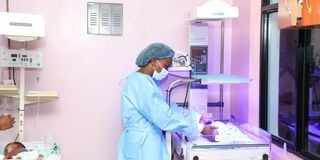 Dr. ALice Nkirote, a consultant pediatrician and head of the pediatrics department at PGH mother baby, during a routine visit at the Neonatal Intensive Care Unit (NICU).